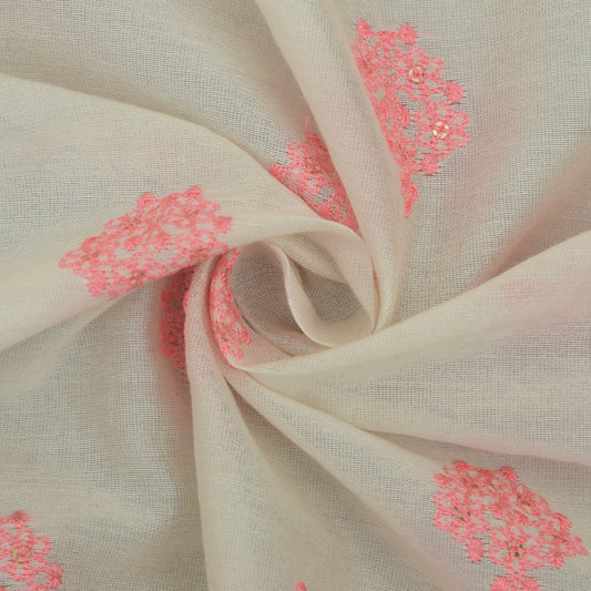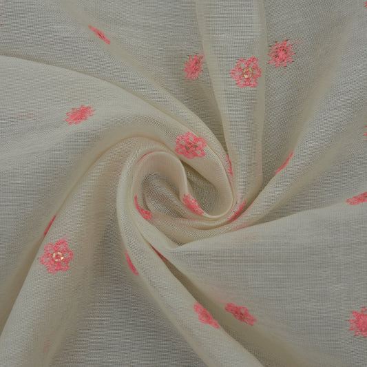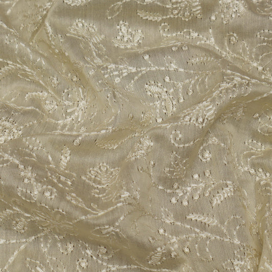 Cream Color Chanderi Embroidery Fabric