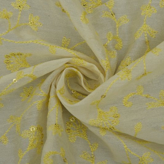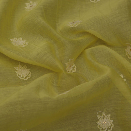 Lemon color Chanderi Embroidery Fabric