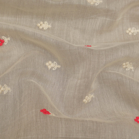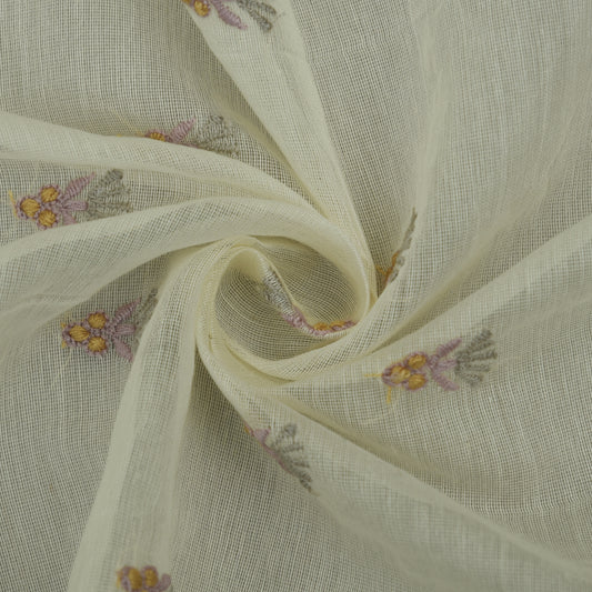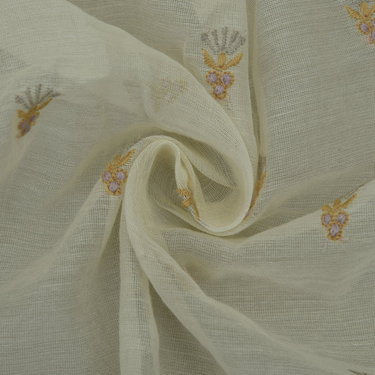 Off White Color Chanderi Booti Embroidery Fabric