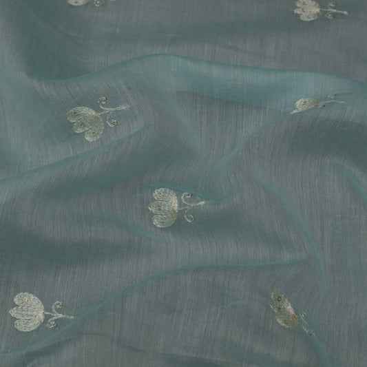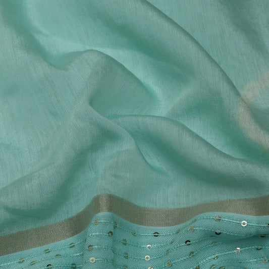 Sea Green Color Chanderi Embroidery Fabric