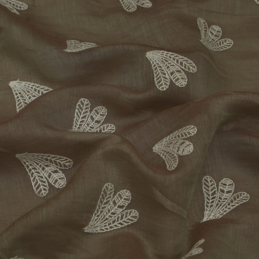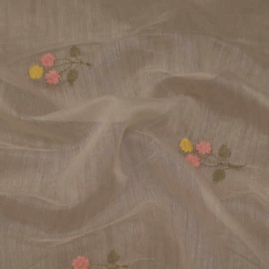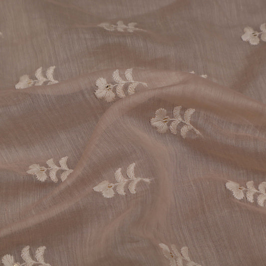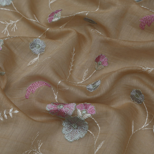 Beige Color Chanderi Embroidery Fabric