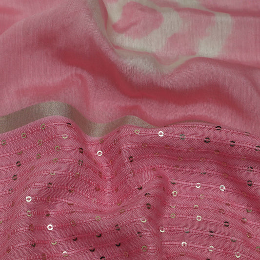 Pink Color Chanderi Silk Embroidery Fabric