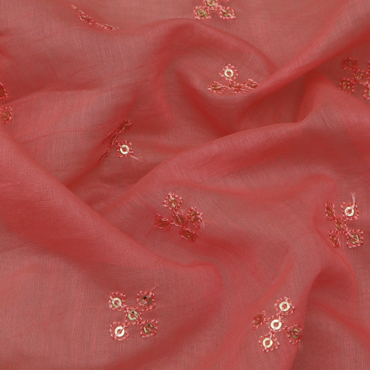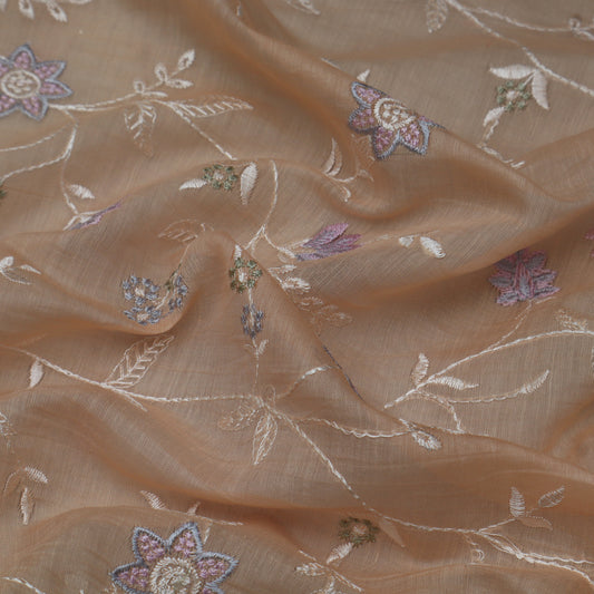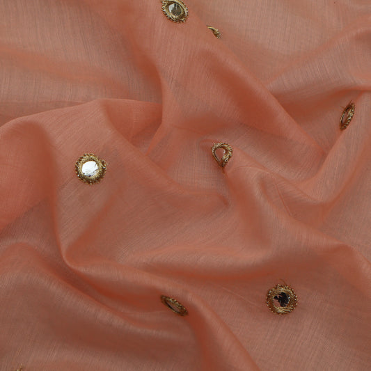 Peach Color Chanderi Embroidery Fabric