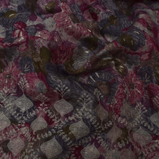 Multi-Colored Chanderi Print Embroidery Fabric