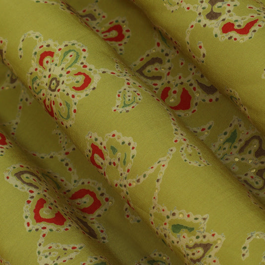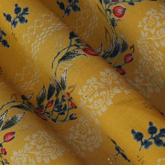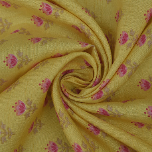 Mustard Color Chanderi Print Fabric