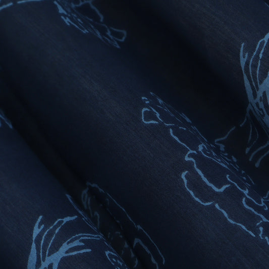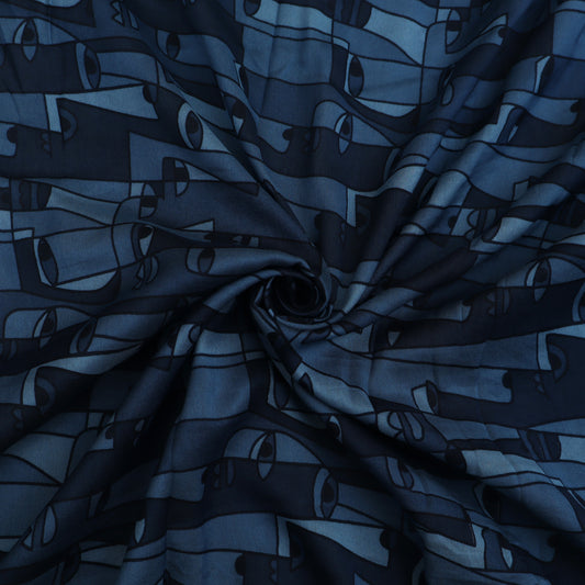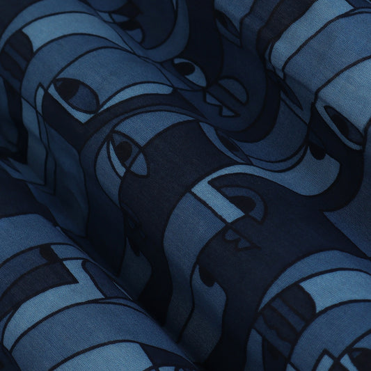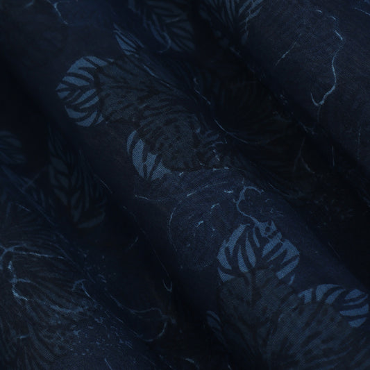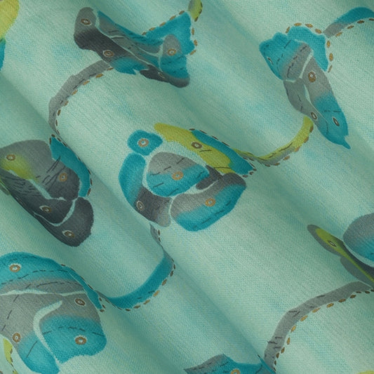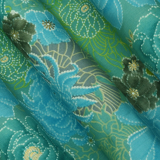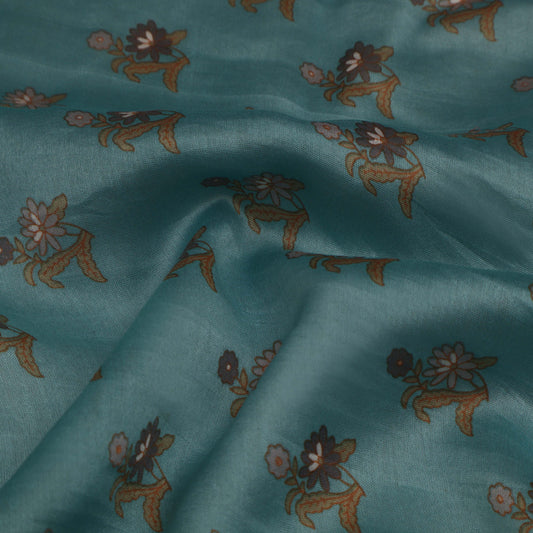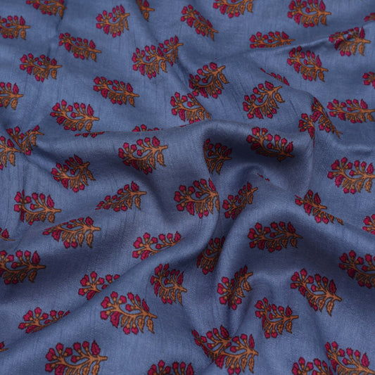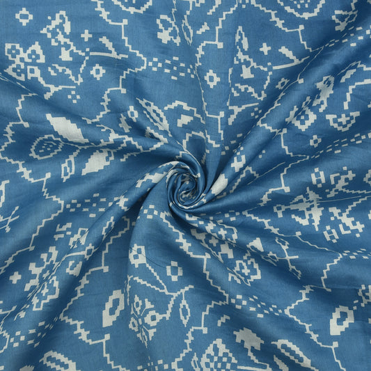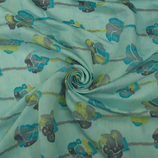 Cadet Blue Color Chanderi Print Fabric