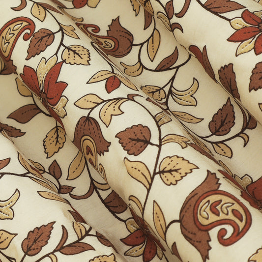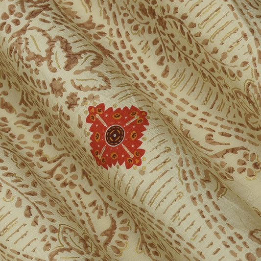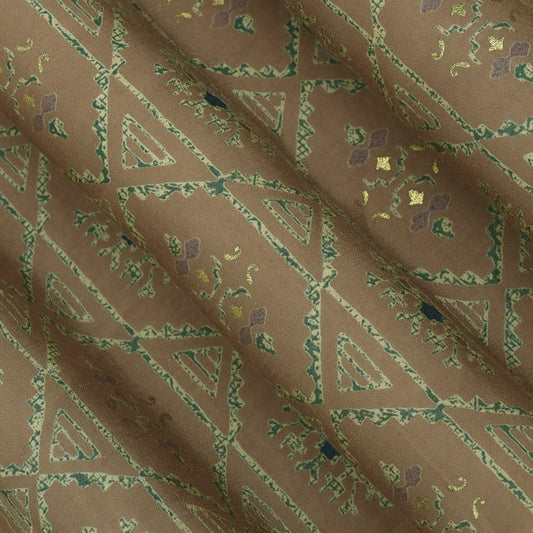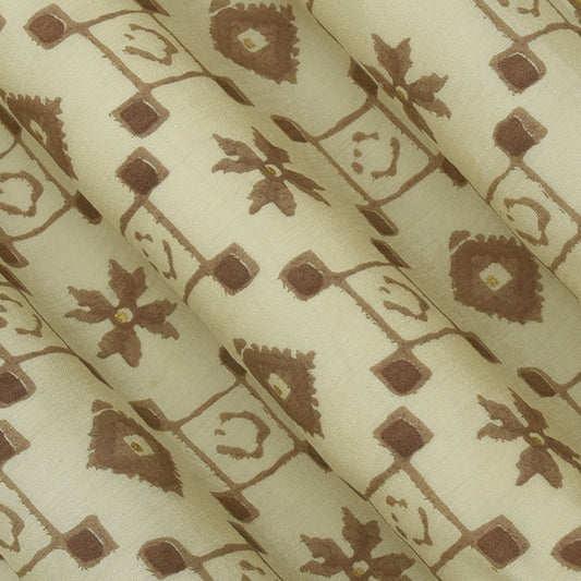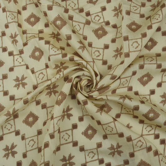 Peanut Brown Color Chanderi Print Fabric