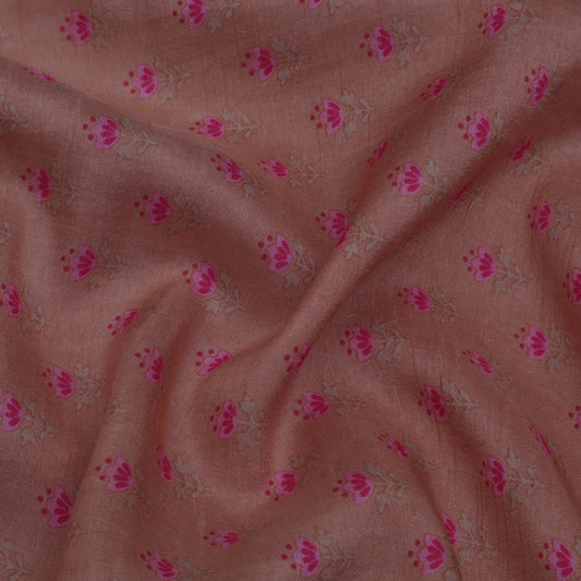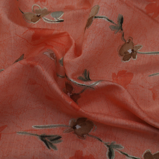 Peach Color Slub Chanderi Print Fabric