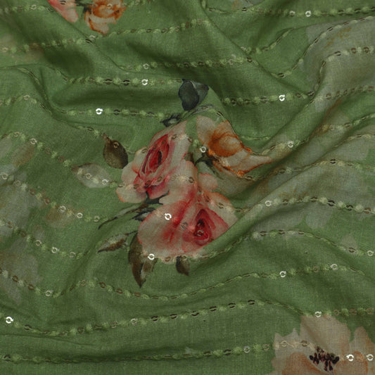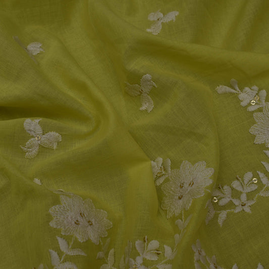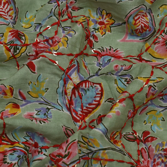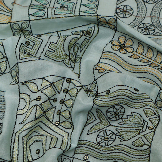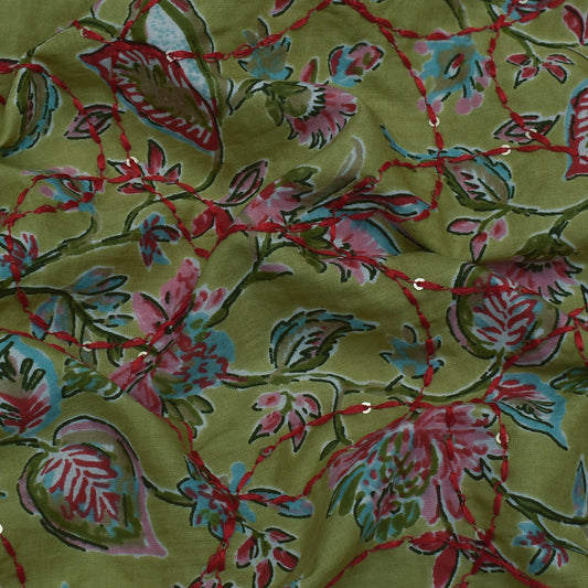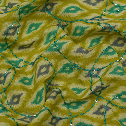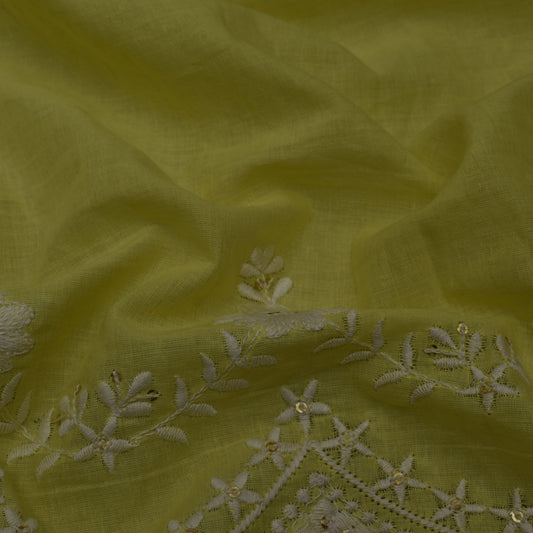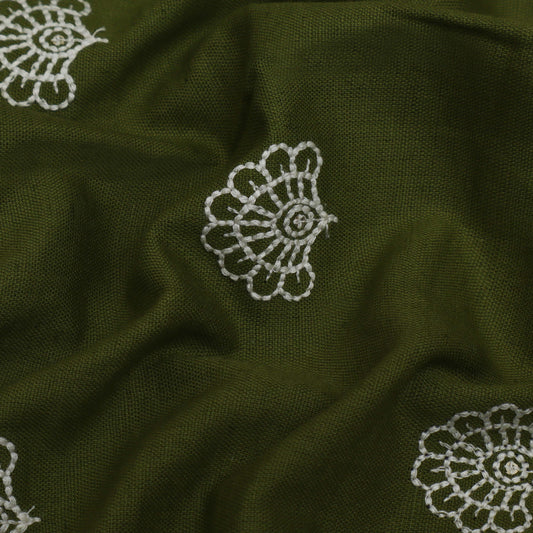 Mehndi Green Color Kora Cotton Embroidery Fabric
