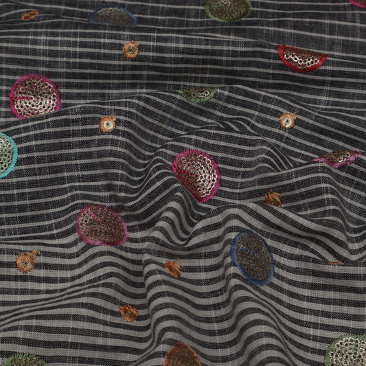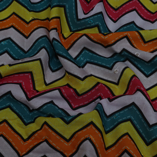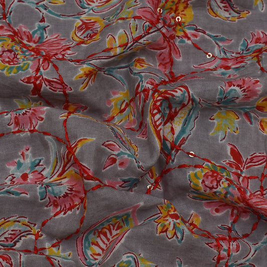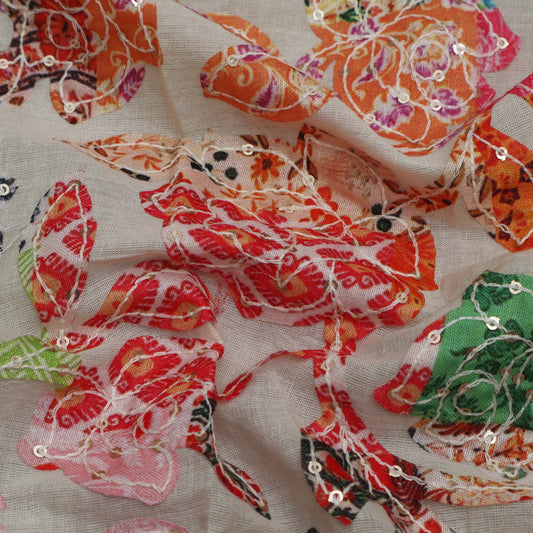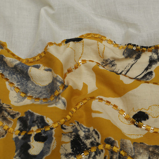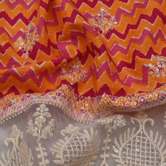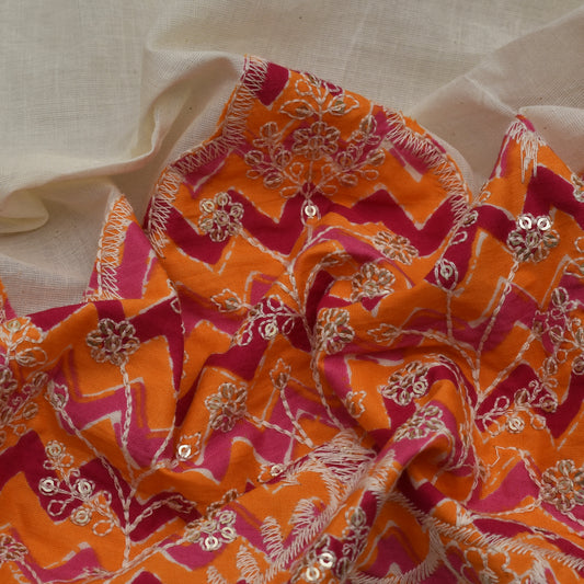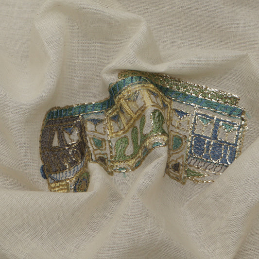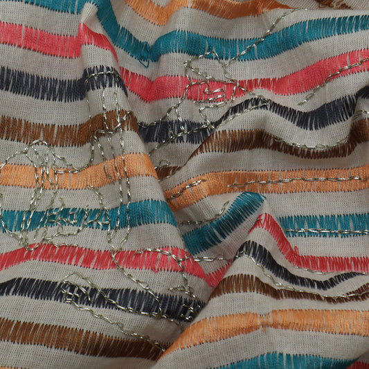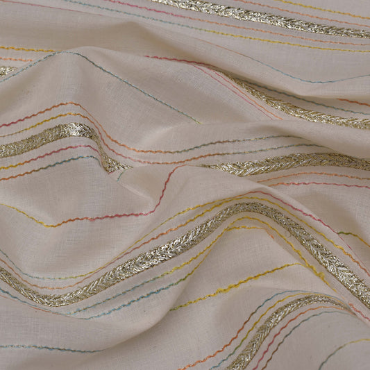 Multi Colored Cotton Chikan Border Print Embroidery Fabric