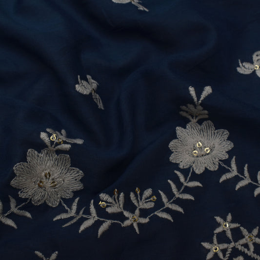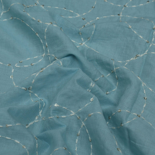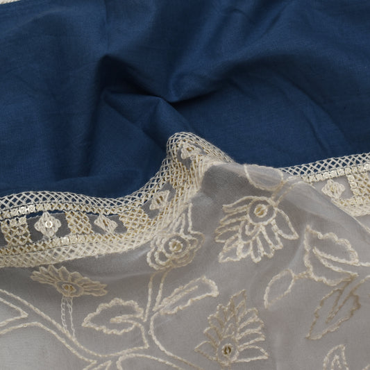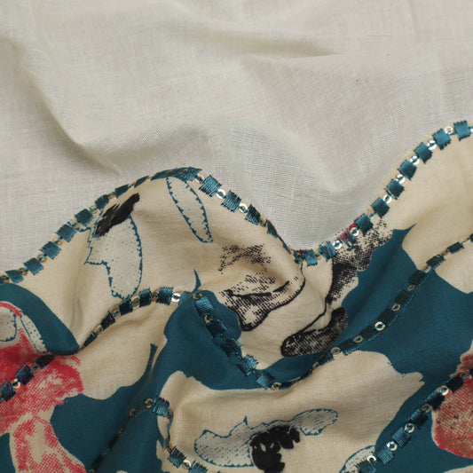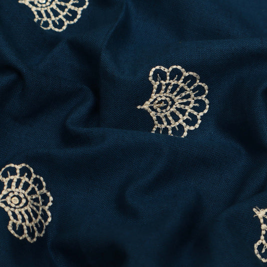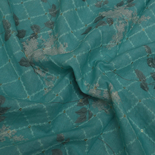 Teal Blue Color Kora Cotton Embroidery Fabric