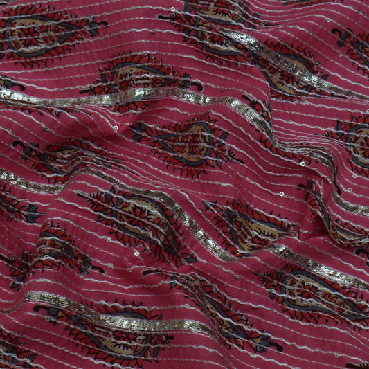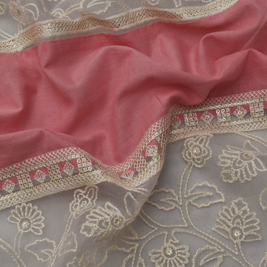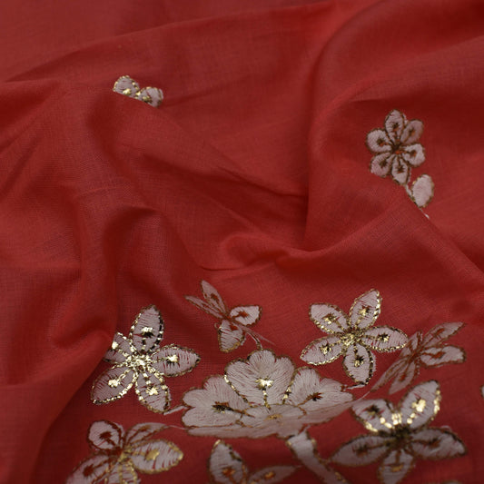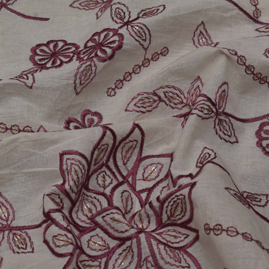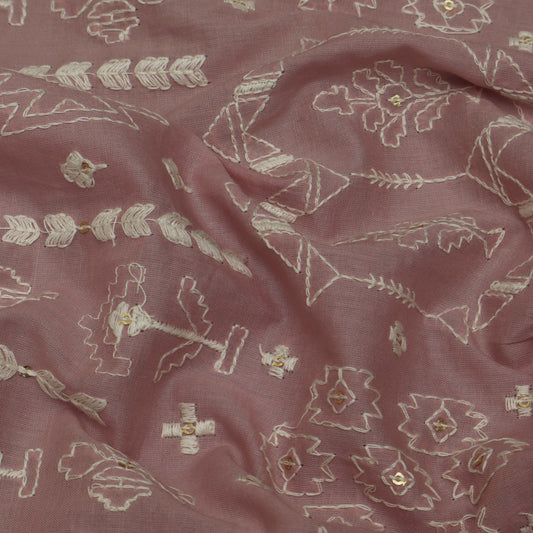 PINK Color Cotton Lurex Embroidery 44' Fabric