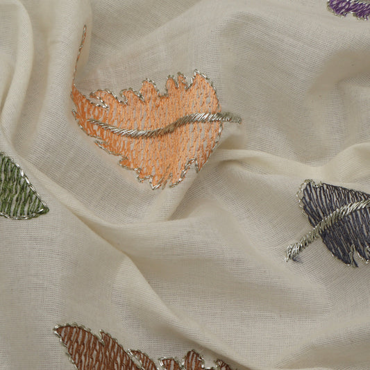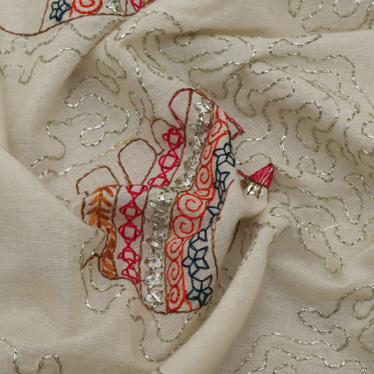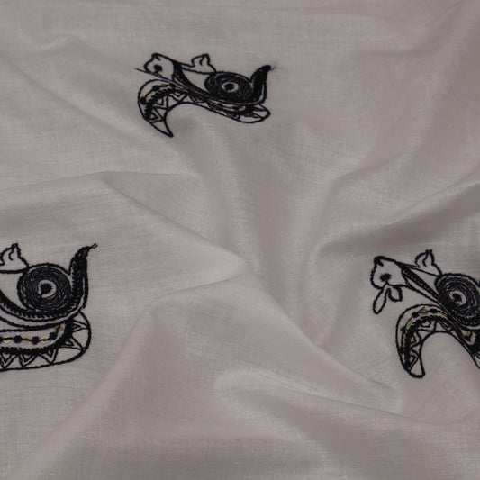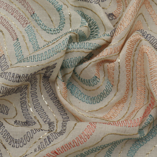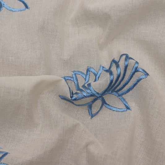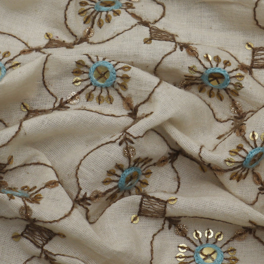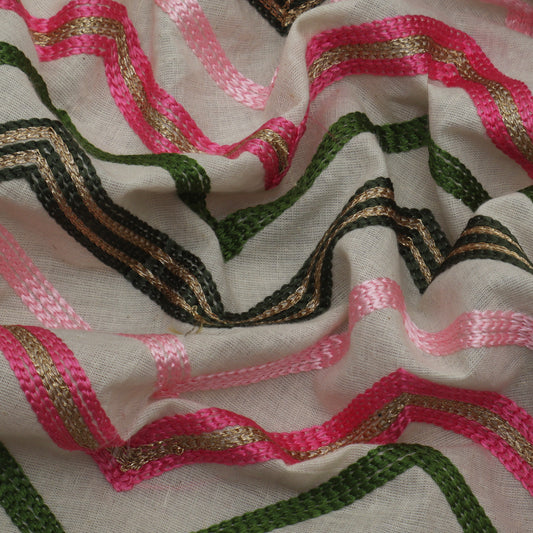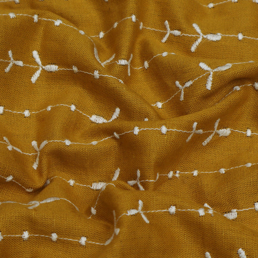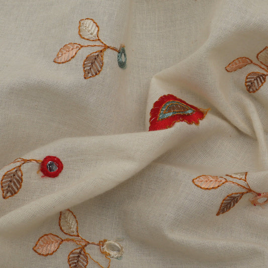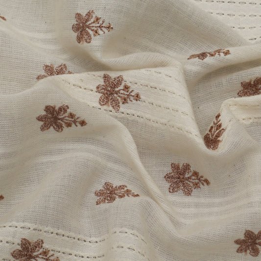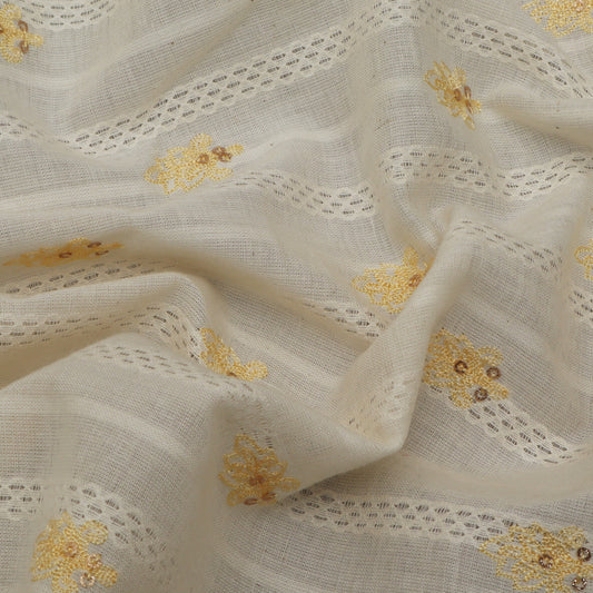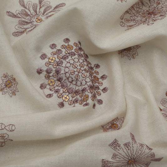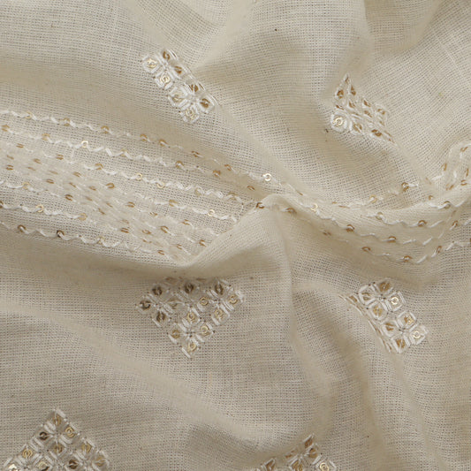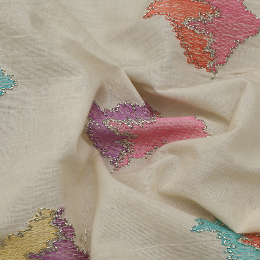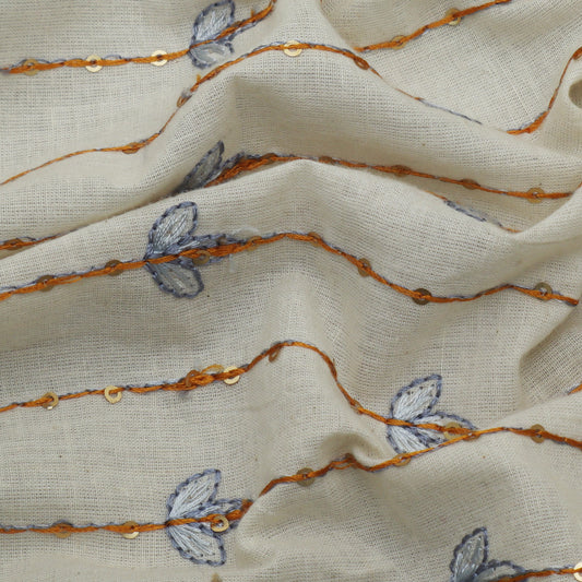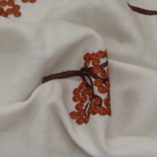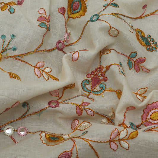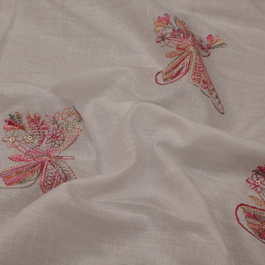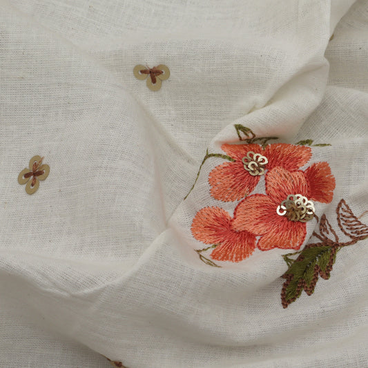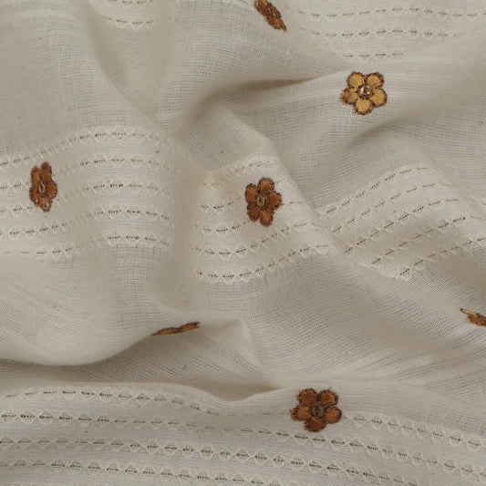 Off White Color Flex Cotton Linen Embroidery Fabric
