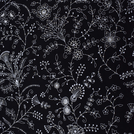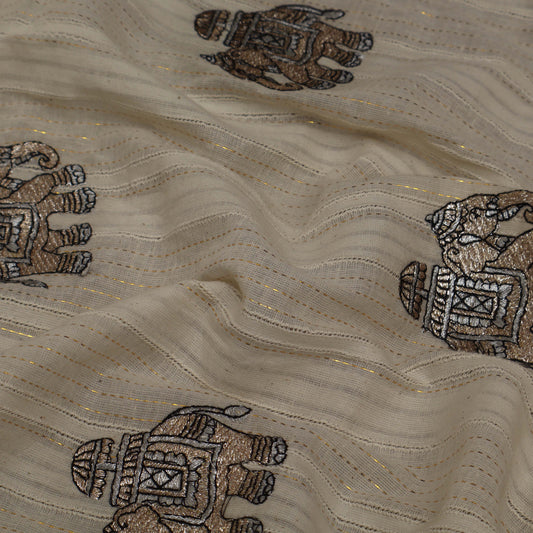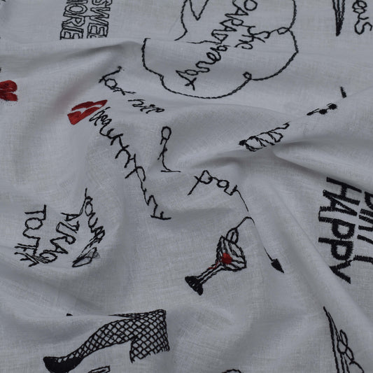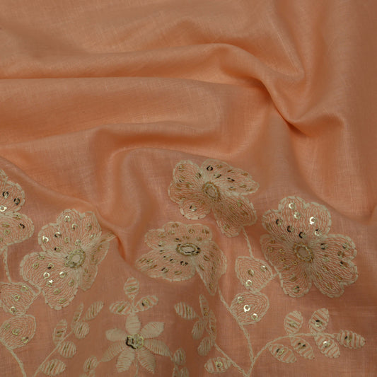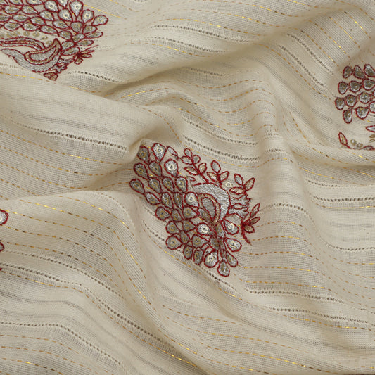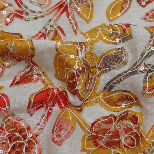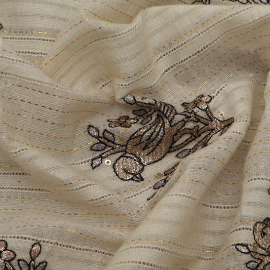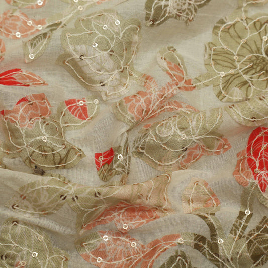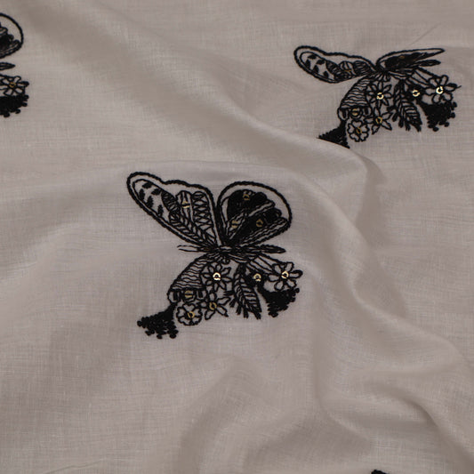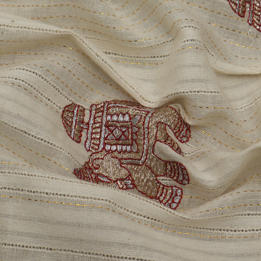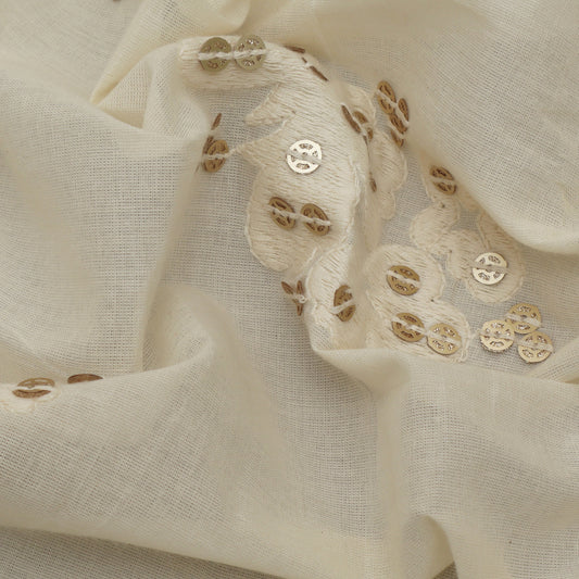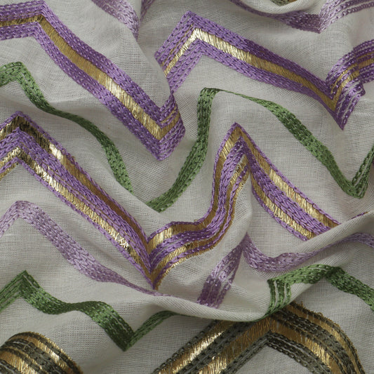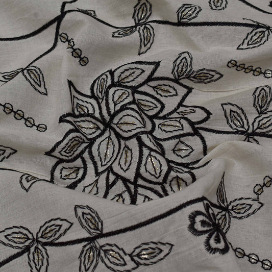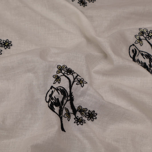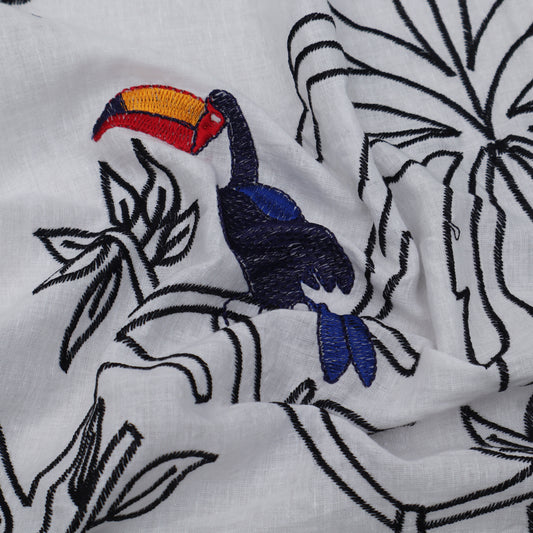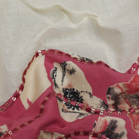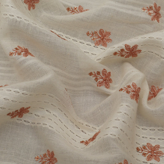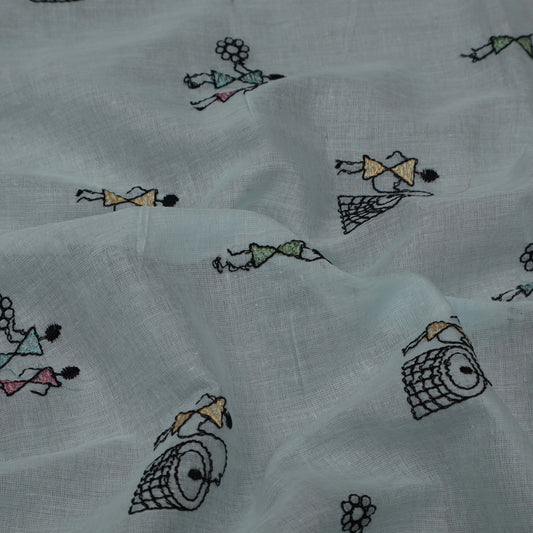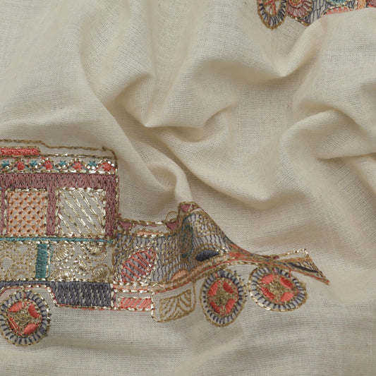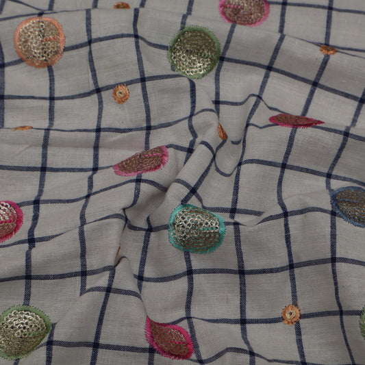 Off White Color Flex Cotton Linen Embroidery Fabric