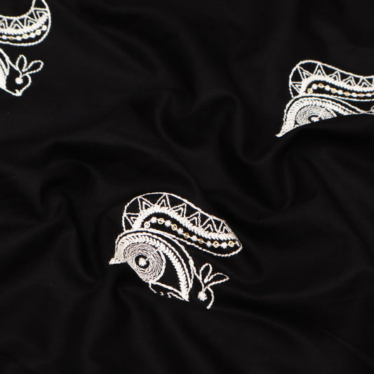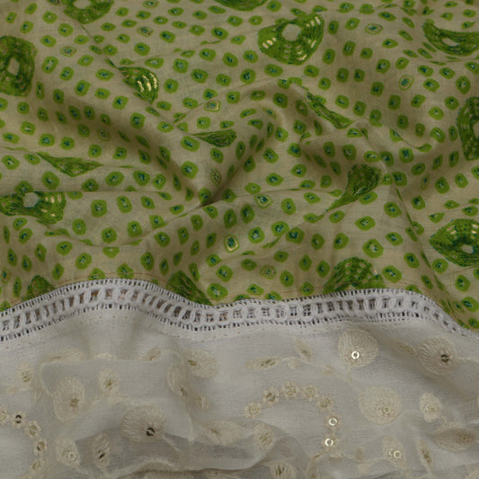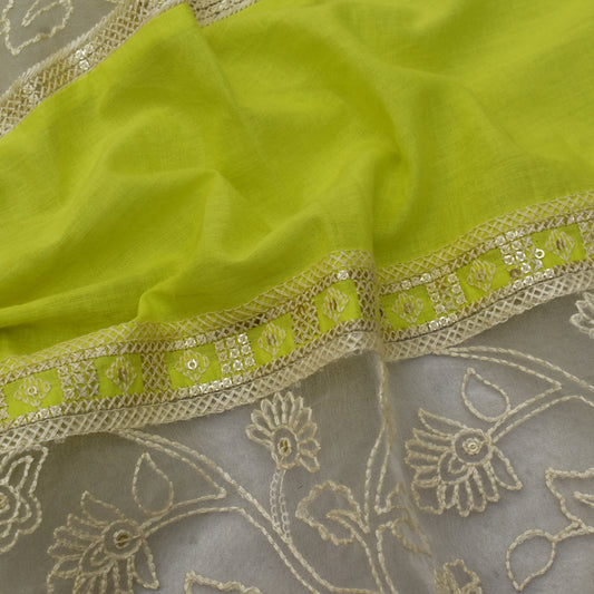 Parrot Green Color Cotton Plazo Embroidery Fabric