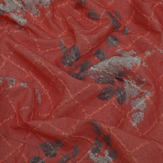 PEACH Color Cotton Embroidery Fabric