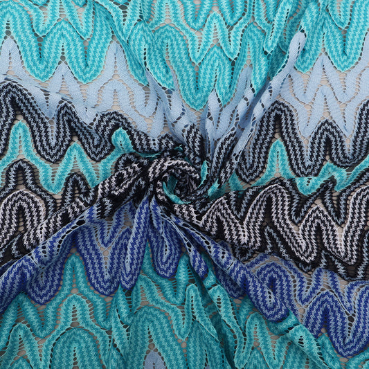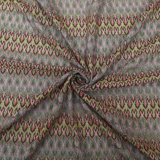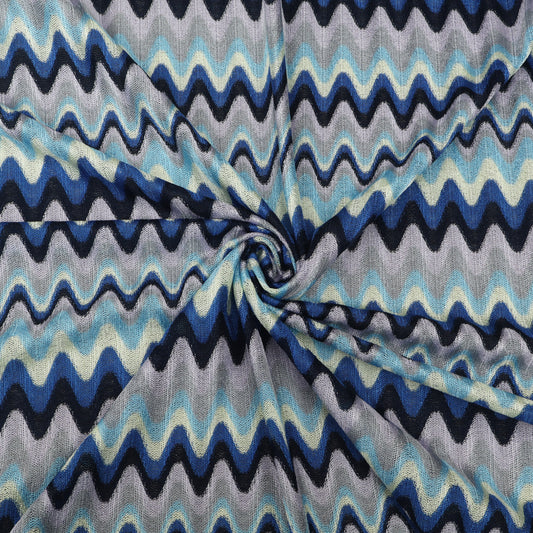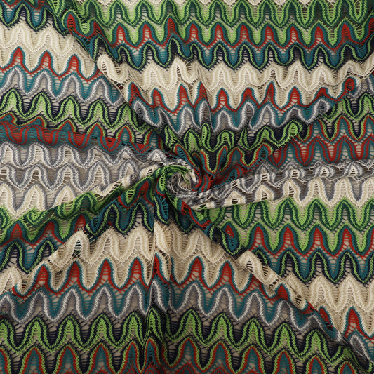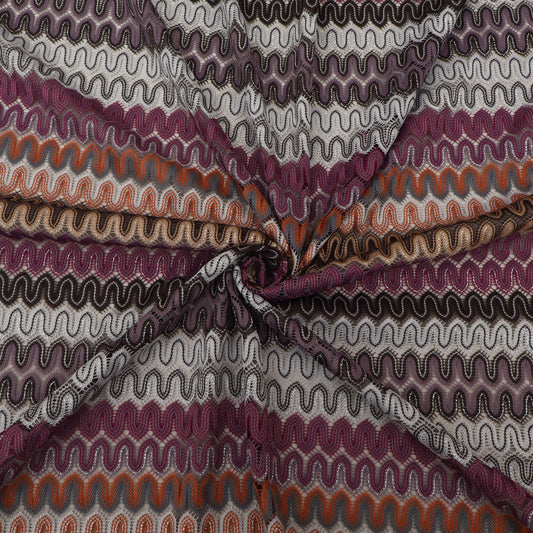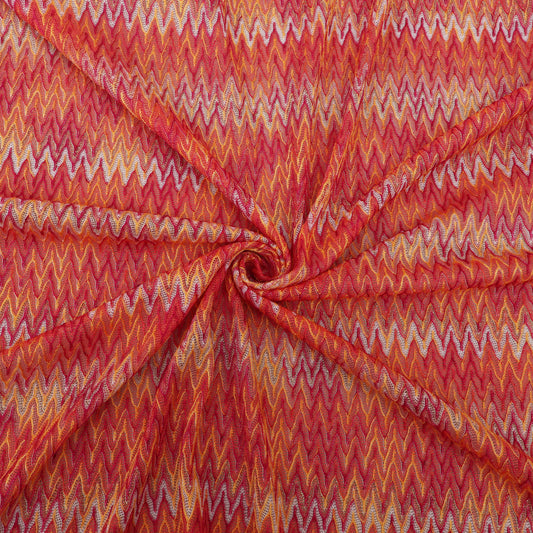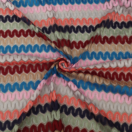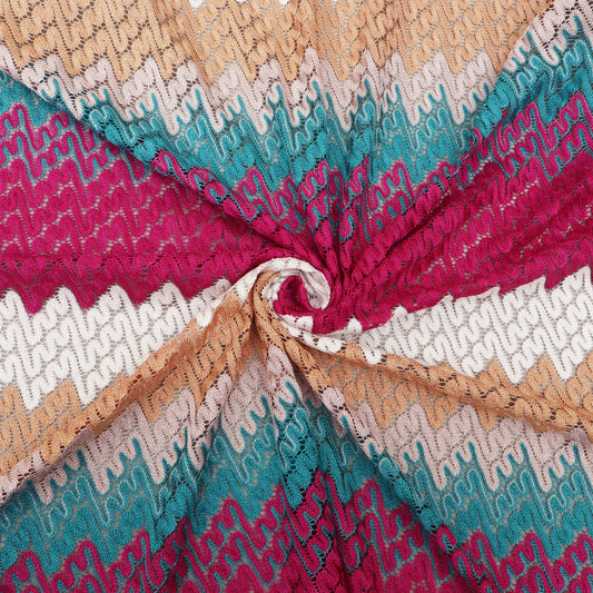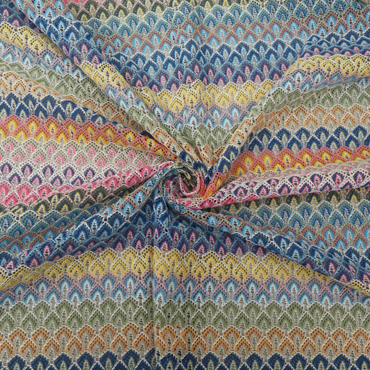 Multi Colored Simmer Zigzag Knitted Crosia Print Fabric