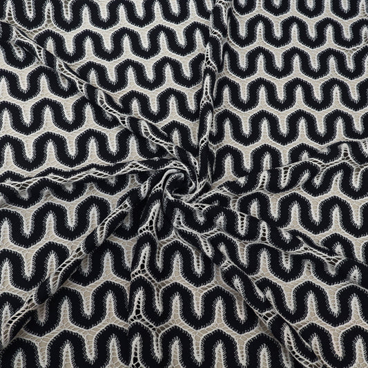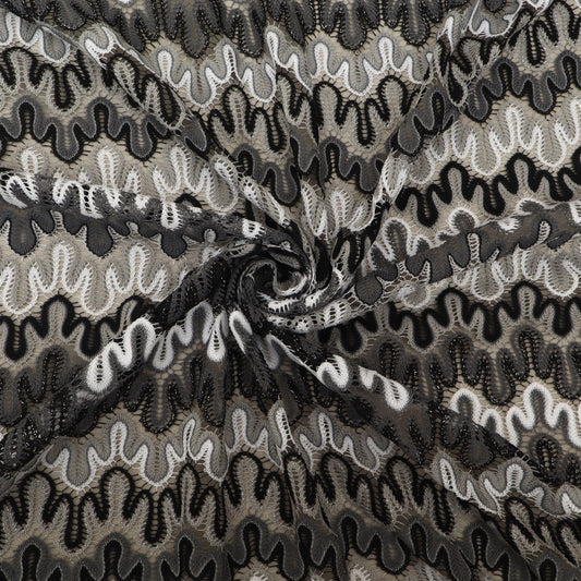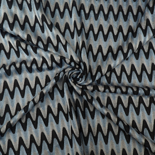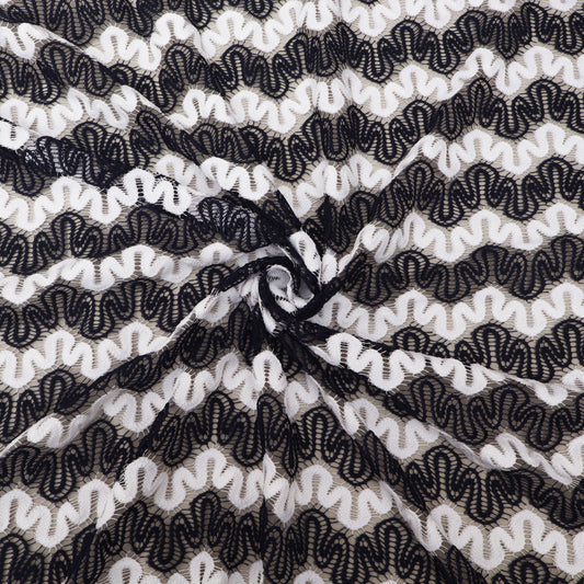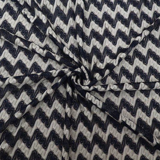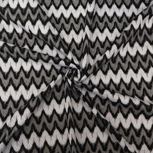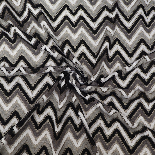 Zig Zag Pattern Crosia Fabric Black White & Grey Tone