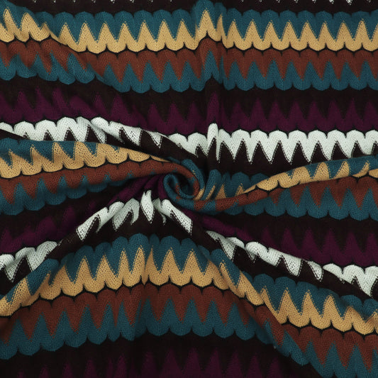 Multi Colored Zigzag Knitted Print Crosia Fabric