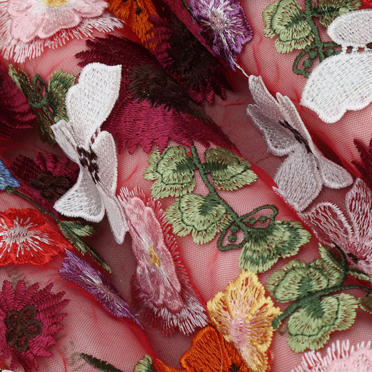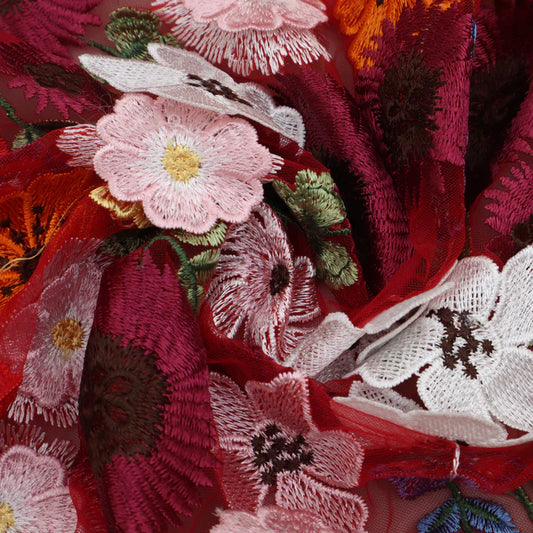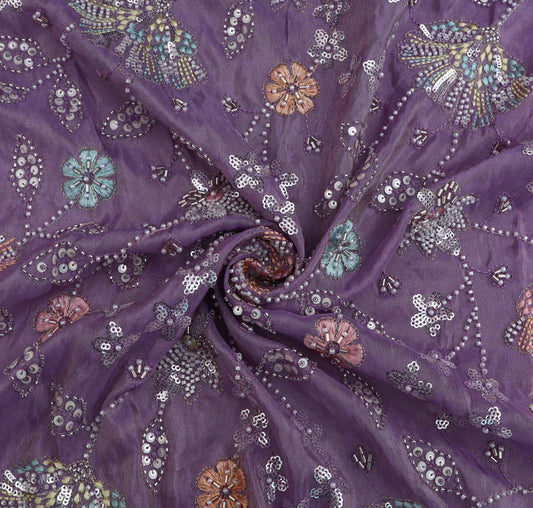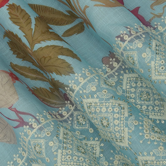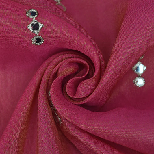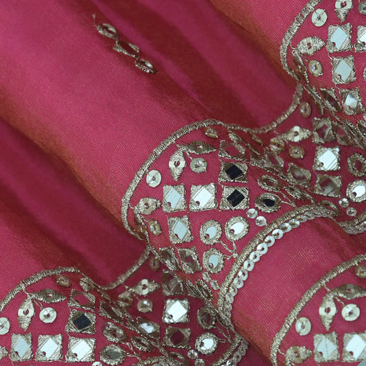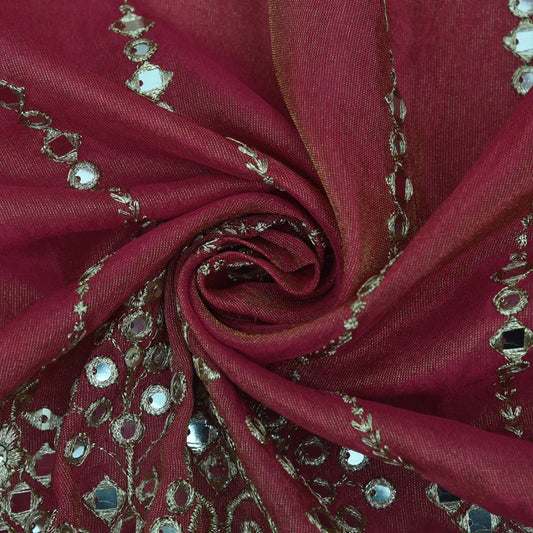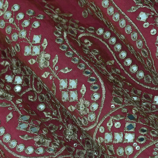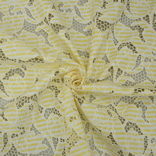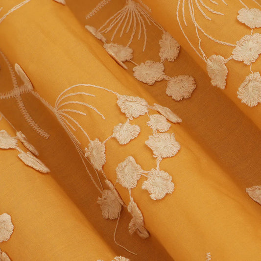 Mustard Color Chanderi Stripe Embroidery Fabric