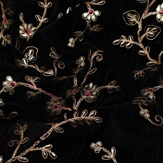 BLACK Color Velvet Embroidery Fabric