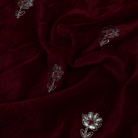 Maroon Color Velvet Embroidery Fabric