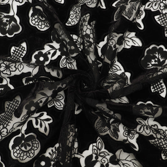 Black Net Velvet Embroidery Fabric