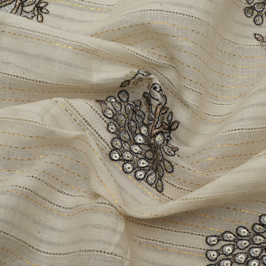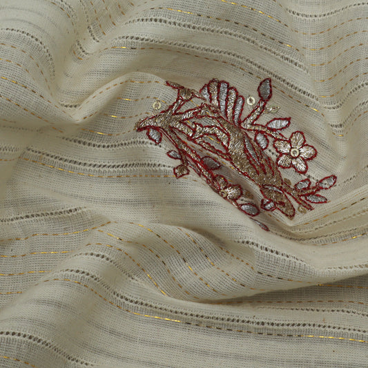 Off White Cotton Linen Jaquard Embroidery Fabric