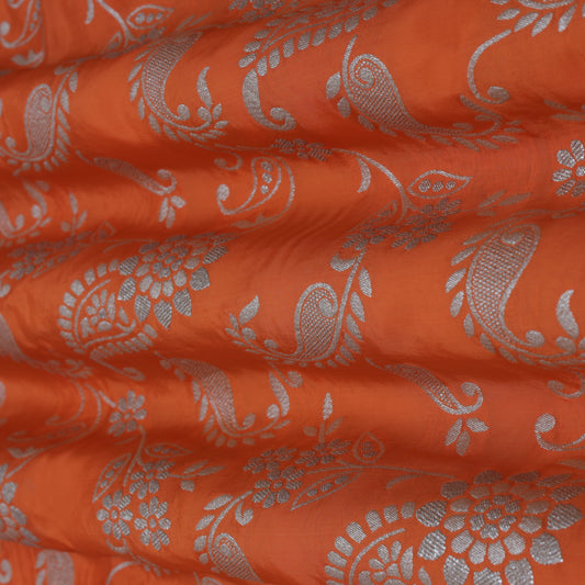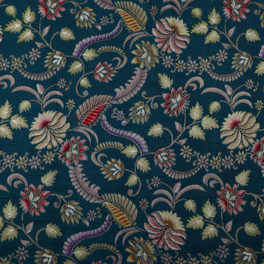 Blue Color Dola Silk Jaquard Floral Print Fabric
