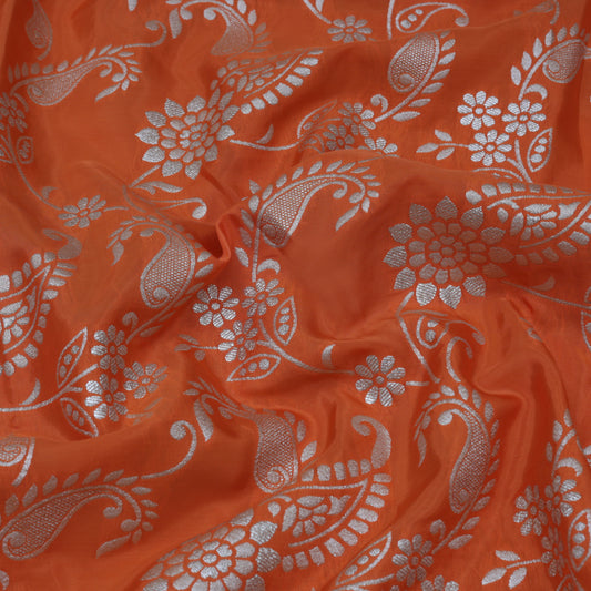 Sea Green Color Organza Tissue Self Jaquard Fabric