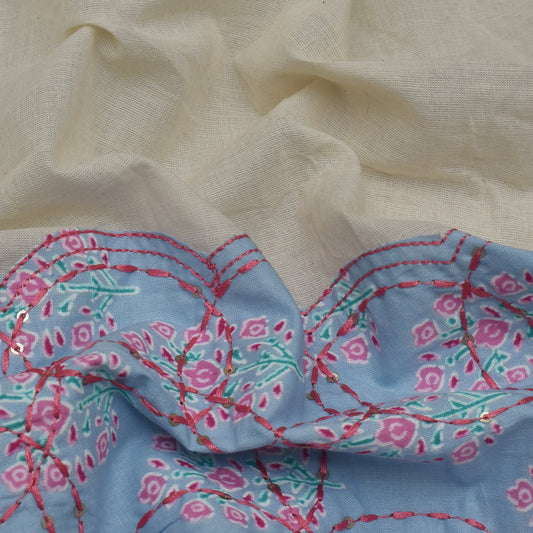 White Color Kora Cotton Embroidery Fabric