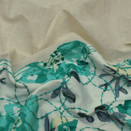 Teal Blue Color Kora Cotton Embroidery Fabric