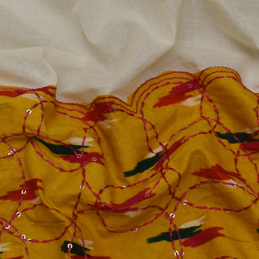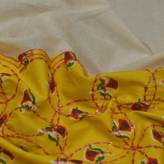 Mustard Color Kora Cotton Embroidery Fabric