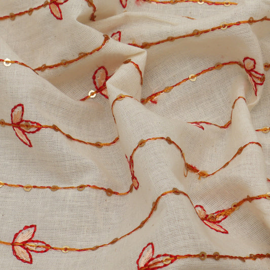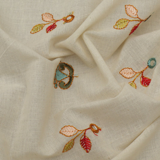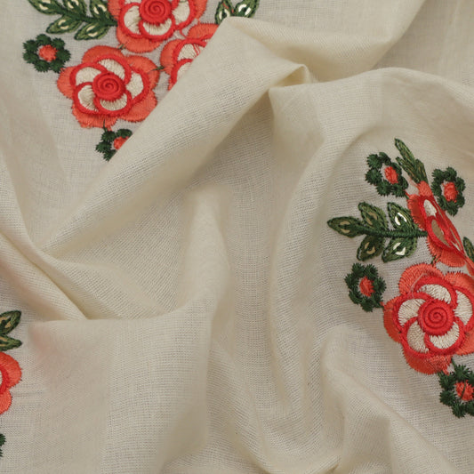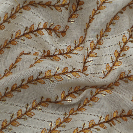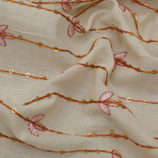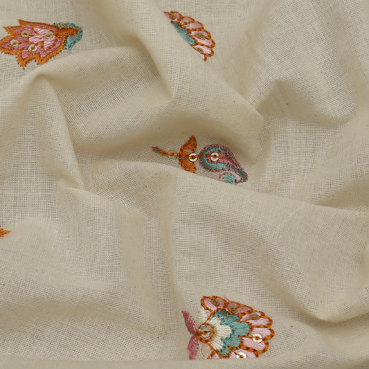 Cream Color Kora Cotton Embroidery Fabric