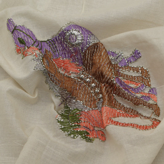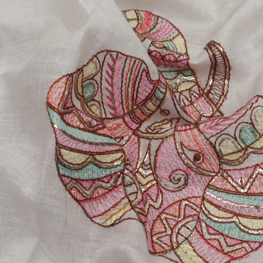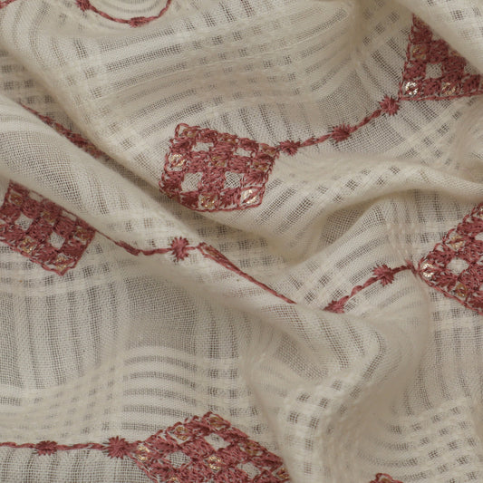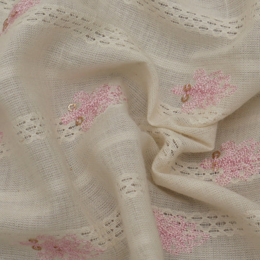 Off White Color Kora Cotton Embroidery Fabric
