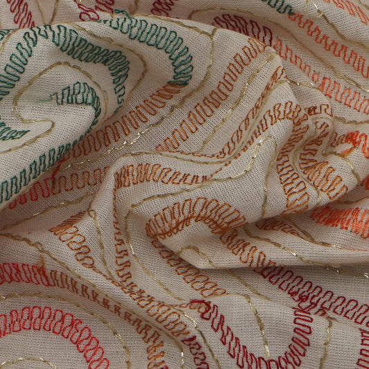 Multi Color Kora Cotton Embroidery Fabric