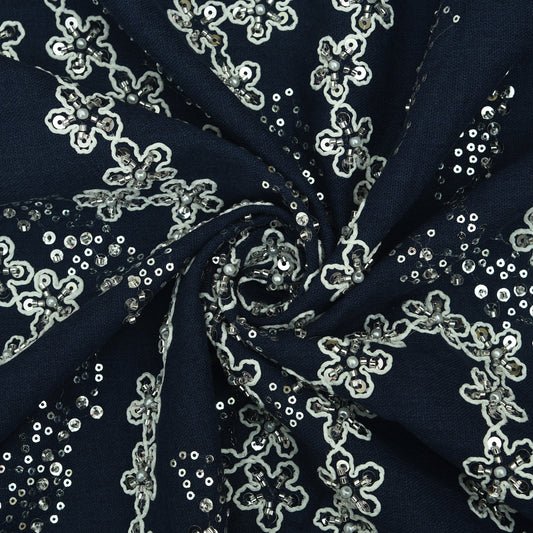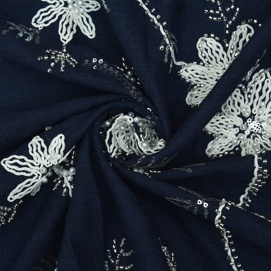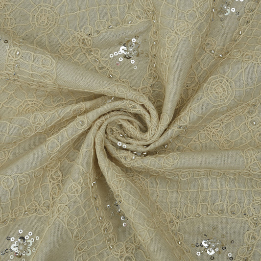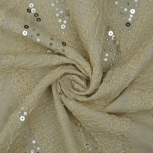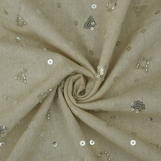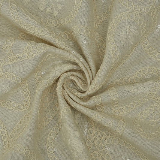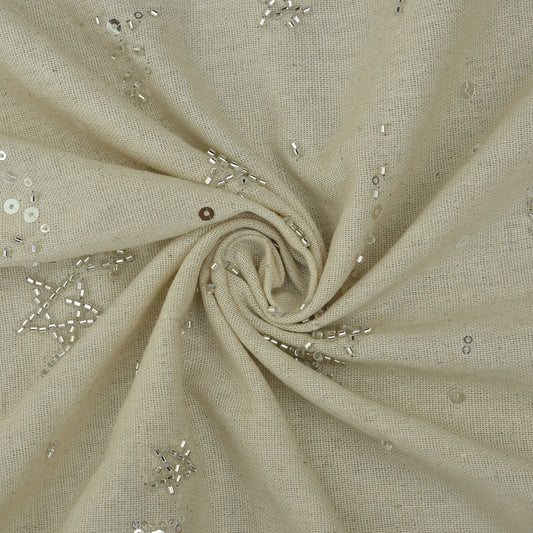 Off White Color Sequins Linen Embroidery Fabric