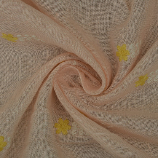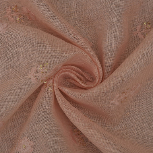 Peach Color Linen Embroidery Fabric