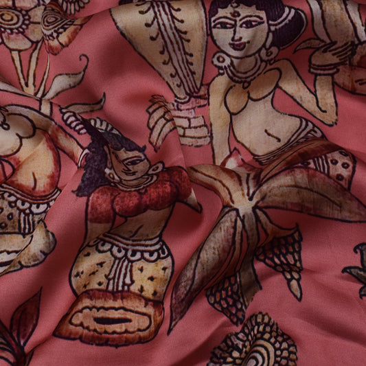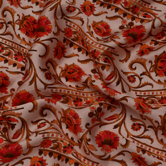 Peach Color Modal Satin Print Fabric
