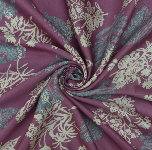 Purple Color Modal Satin print Fabric