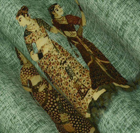 Green Color Modal Satin Print Fabric