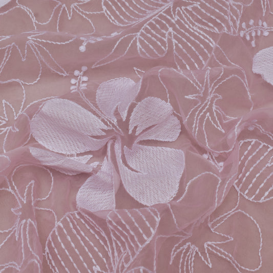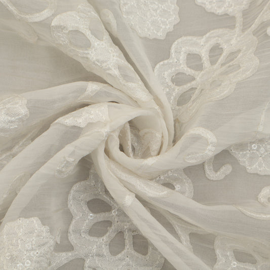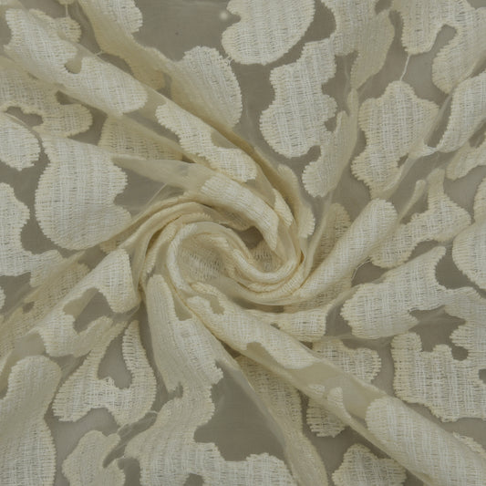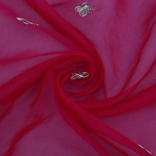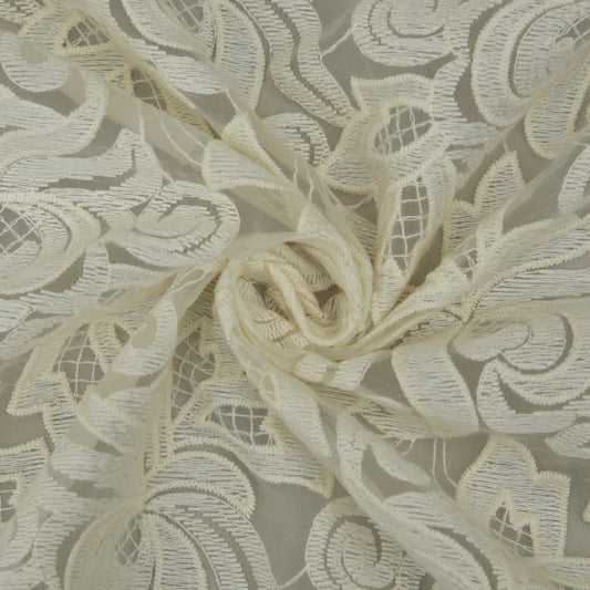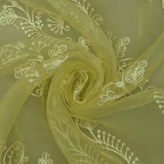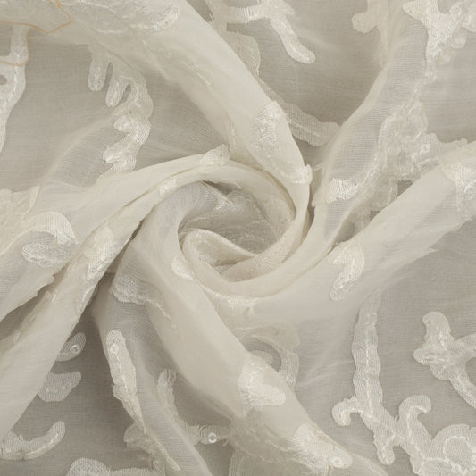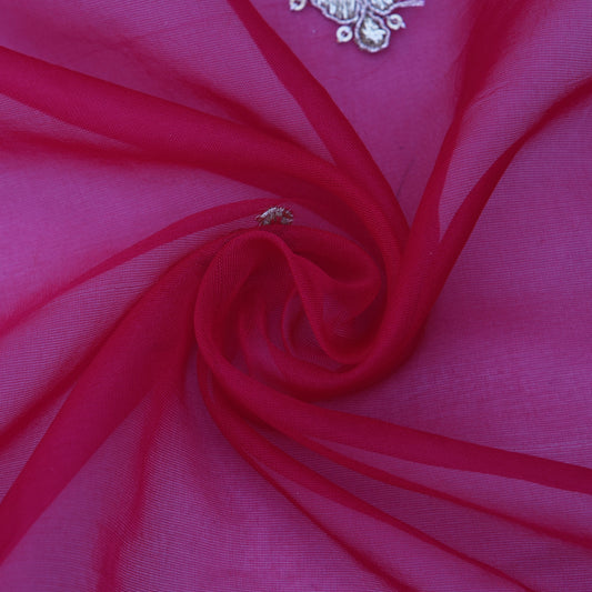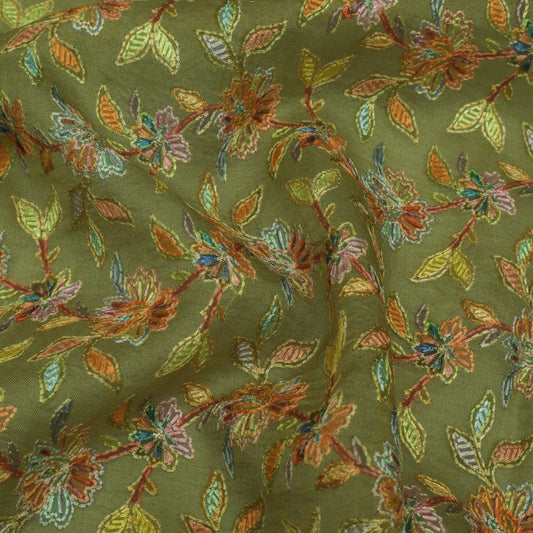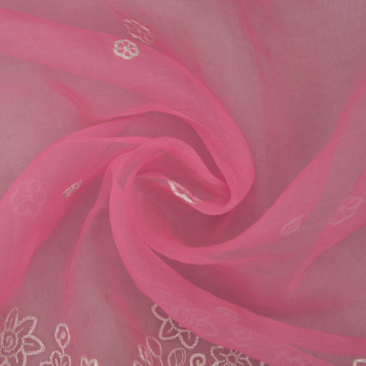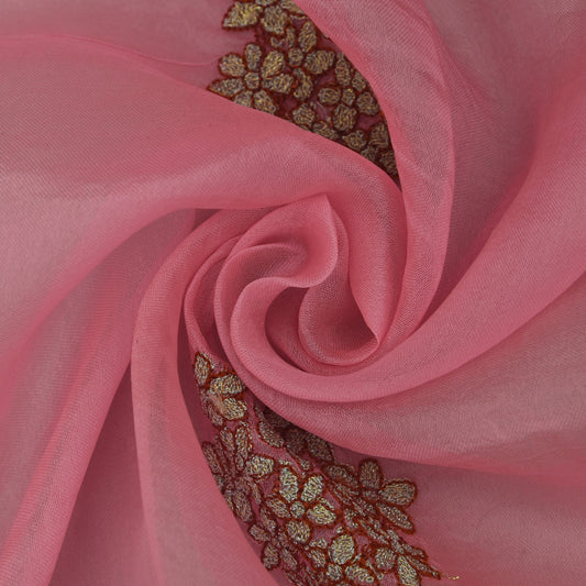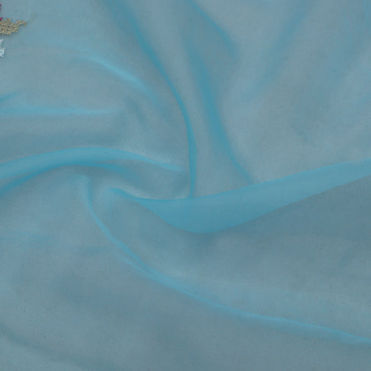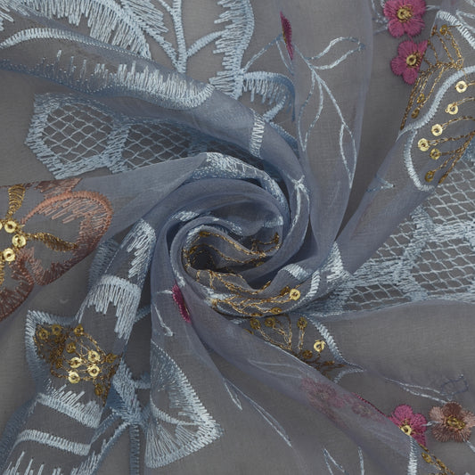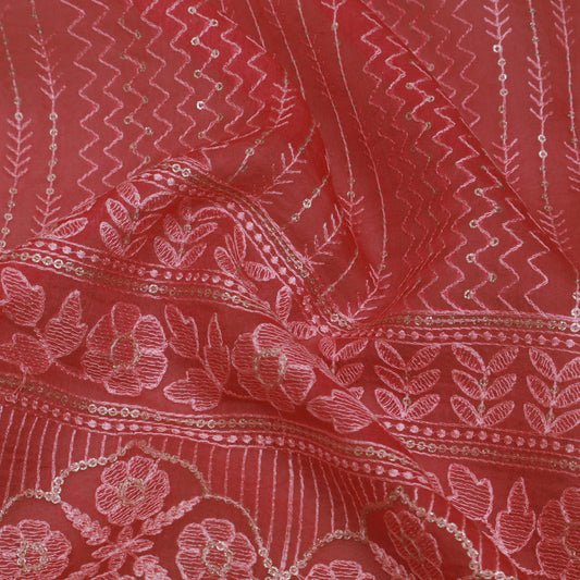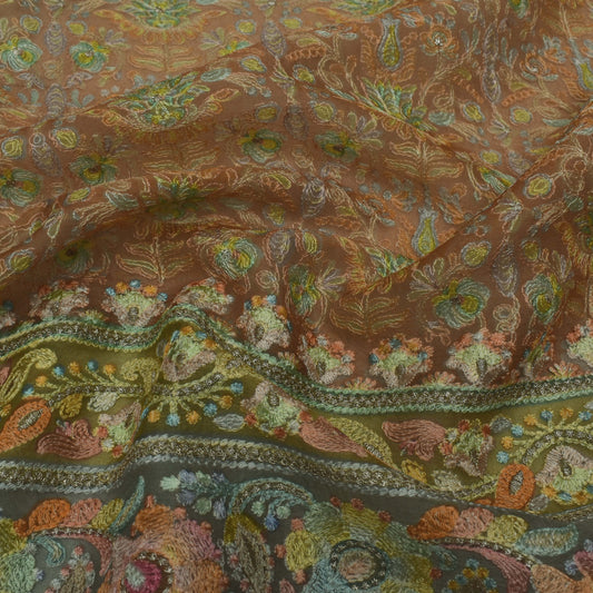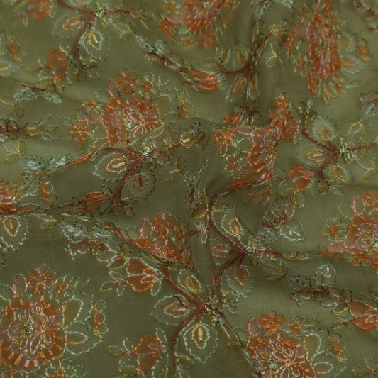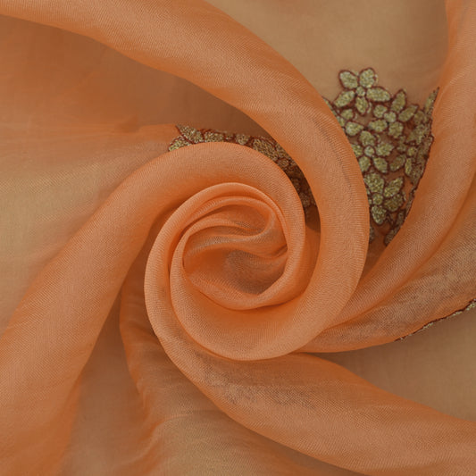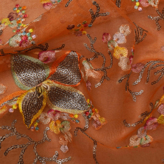 Orange Multi Colored Organza Embroidery Designer Fabric