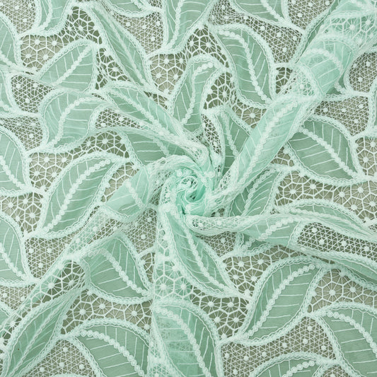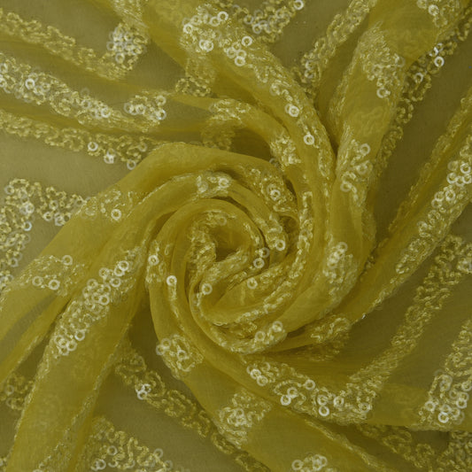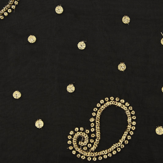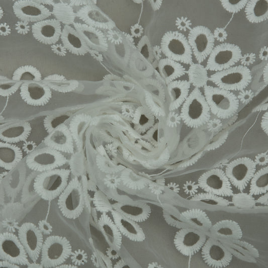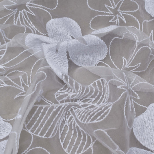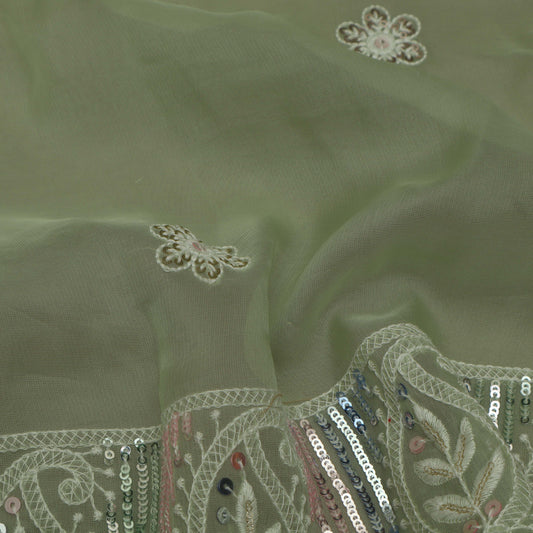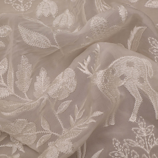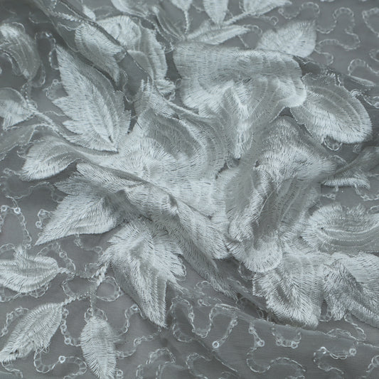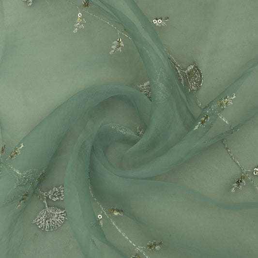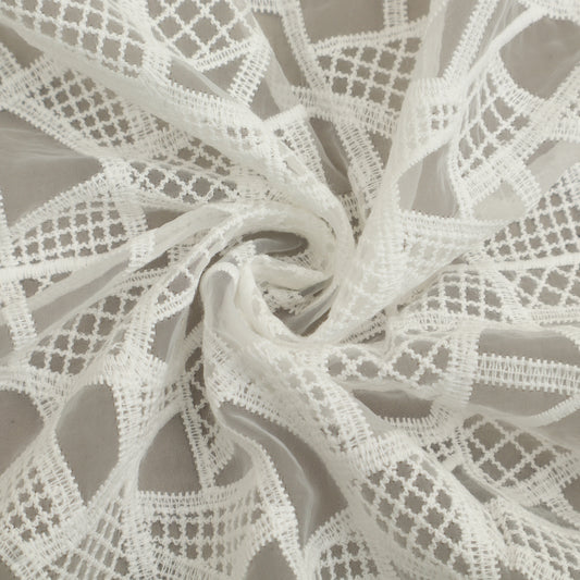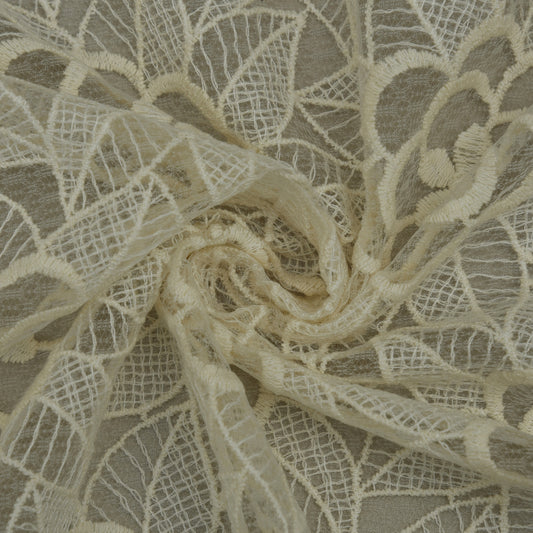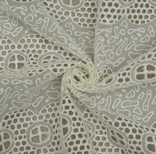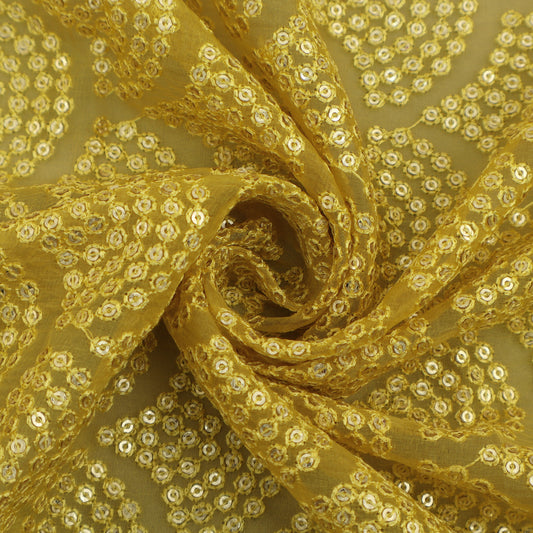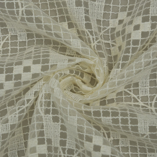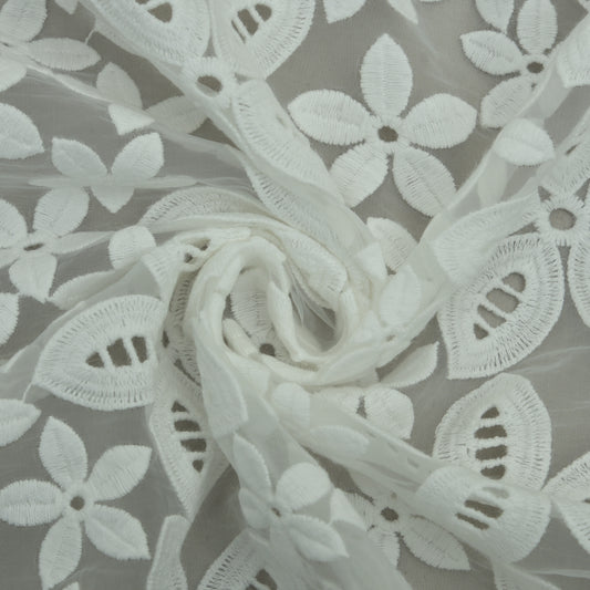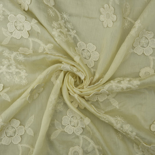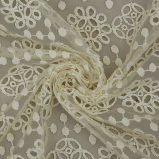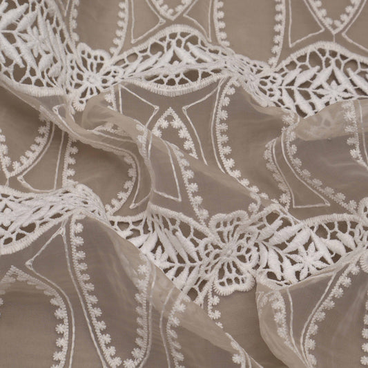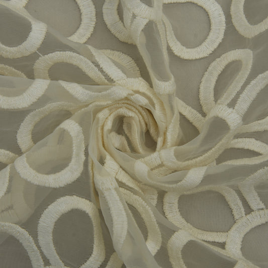 Orange Multi Colored Organza Embroidery Designer Fabric