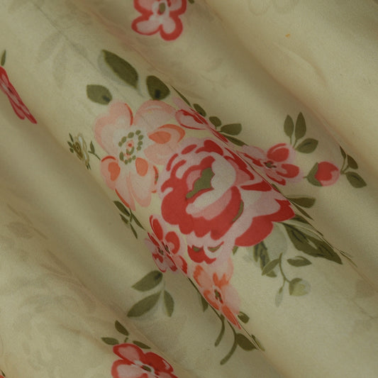 Cream Color Floral Tissue Foil Organza Print Fabric