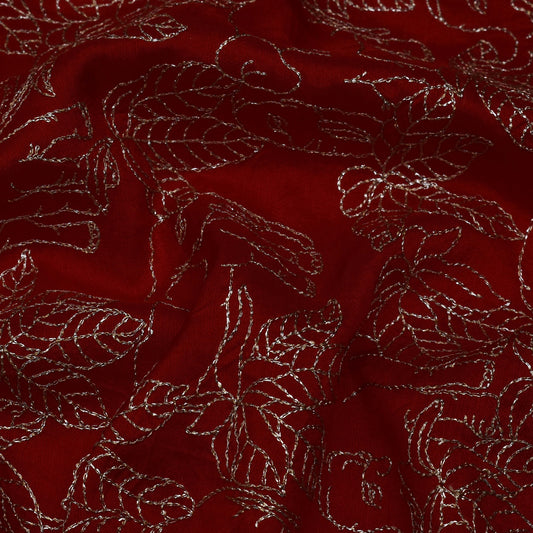 Blood Red Color Dola Silk Embroidery Fabric