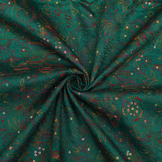 Green Color Katan Munga Silk embroidery Fabric