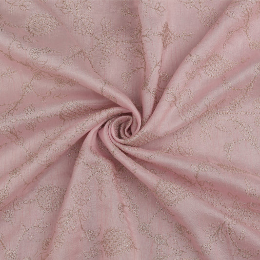 Baby Pink Color Noil Silk Embroidery Fabric