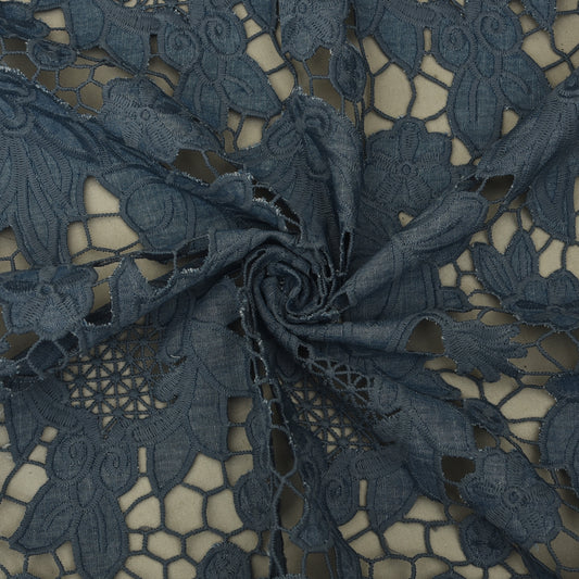 Sold outDenim Crosia Embroidery Fabric