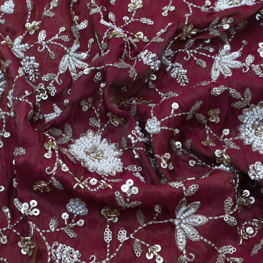 Maroon Color Dola Silk Embroidery Fabric