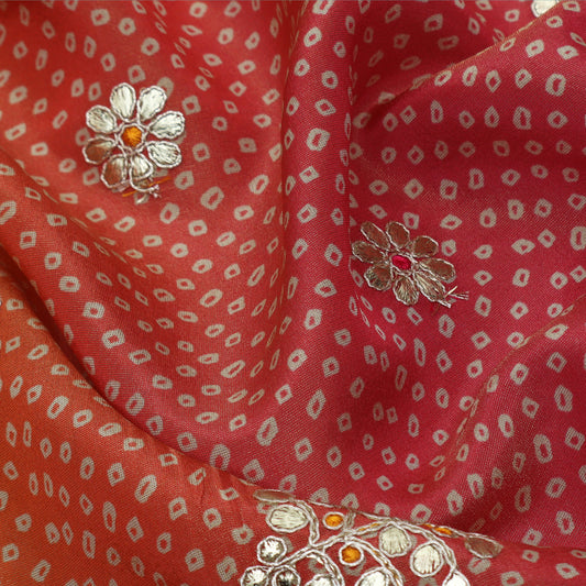 Blood Red Color Dola Silk Embroidery Fabric